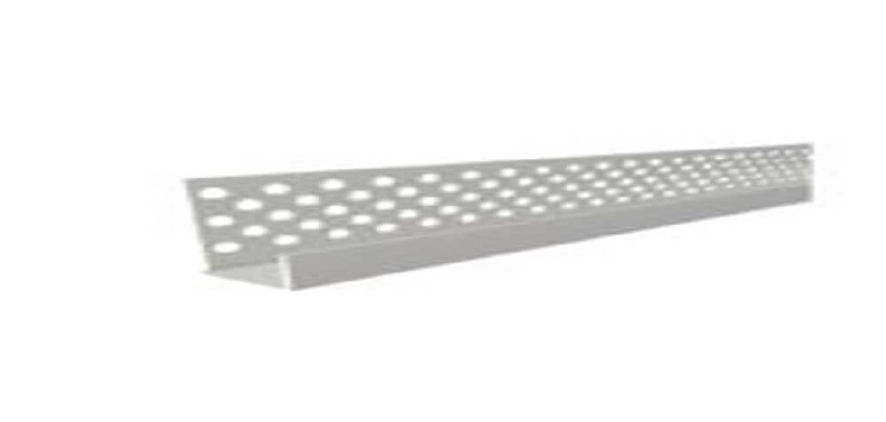 la terminal en J es un perfil plastico Diseñado para lograr un acabado limpio en las terminaciones de Drywall. Envuelve completamente el borde de la hoja de Drywall, escondiendo todas las irregularidades de los cortes del material. El diseño de la aleta perforada proporciona excelente adherencia de la masilla al perfil. El producto final es un borde perfectamente derecho y resistente a impactos. 3,05